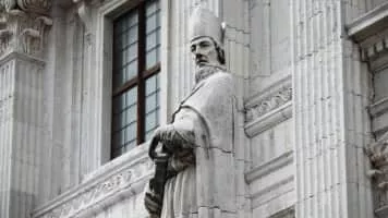 Saint Meinhard was a German Augustinian canon regular and the first Bishop of Livonia. His life was described in the Chronicle of Henry of Livonia. His body rests in the now-Lutheran Riga Cathedral, as his remains were moved to Riga in 1226. He is venerated as the apostle of the Church in Latvia.
