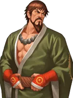 Saisyu Kusanagi is a character who debuted in The King of Fighters '94 as a victim in Rugal's gallery of defeated fighters. He appears as a mid-boss in The King of Fighters '95 and becomes a regular character for the first time in The King of Fighters '98.