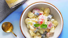 Fruit salad is a dish consisting of various kinds of fruit, sometimes served in a liquid, either their juices or a syrup. In different forms, fruit salad can be served as an appetizer or a side as a salad. A fruit salad is sometimes known as a fruit cocktail, or fruit cup.