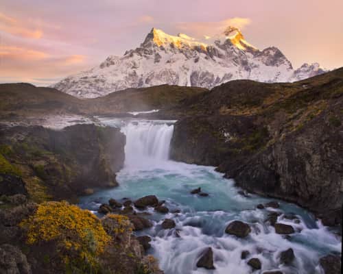 The Salto Grande is a waterfall on the Paine River, after the Nordenskjöld Lake, within the Torres del Paine National Park in Chile. In the vicinity of Salto Grande are a variety of natural vegetation forms as well as certain wildlife species, including the wild guanaco.