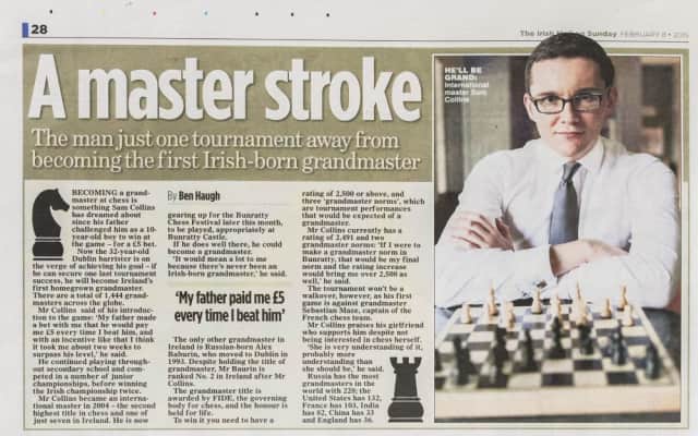 Sam E. Collins is an Irish chess player. He was awarded the title International Master by FIDE in 2004.
