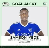Samson Iyede Onomigho is a Nigerian footballer currently playing as a forward for AC Horsens in Denmark, who bought him on June 7th 2022 from FC Fredericia.