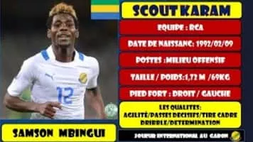 Samson Mbingui is a Gabonese professional footballer who plays for the Gabon national football team. Mbingui was a member of the Gabon national under-23 football team at the 2011 CAF U-23 Championship and the 2012 Summer Olympics.