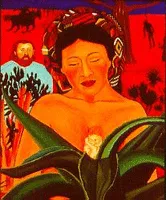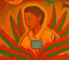 Santa Barraza is an American mixed-media artist and painter who is well known for her colorful, retablo style painting. A Chicana, Barraza pulls inspiration from her own mestiza ancestry and from pre-Columbian art. Barraza is considered to be an important artist in the Chicano art movement.