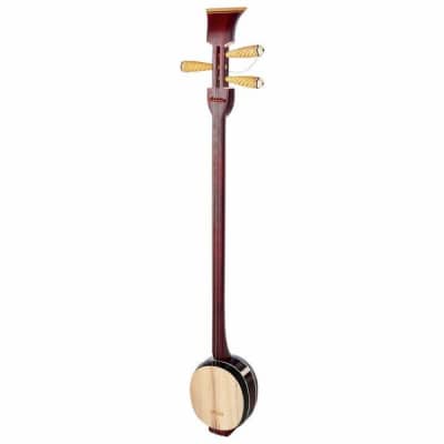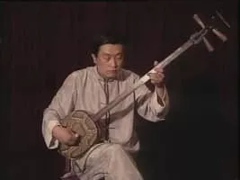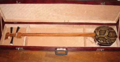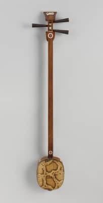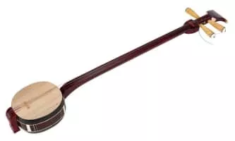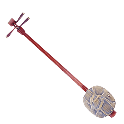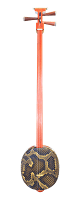 The sanxian is a three-stringed traditional Chinese lute. It has a long fretless fingerboard, and the body is traditionally made from snake skin stretched over a rounded rectangular resonator.