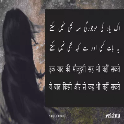 Saqi Farooqi was an Urdu poet born on 21 December 1936 in Gorakhpur in Uttar Pradesh, India. His family migrated from India to East Pakistan and then to Karachi, Pakistan. He went from Pakistan to London and made an influence in English poetry. His famous works include Behram ki wapsi and Razoon se bhara basta.