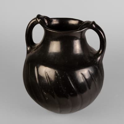 Sara Fina Gutiérrez Tafoya was a Tewa matriarch potter from Kha'po Owingeh, New Mexico. Tafoya is known for her minimally-adorned blackware and black-on-black ware, frequently marked with the imprint of a bear claw motif. She has been referred to as "undoubtedly the outstanding Tewa potter of her time."