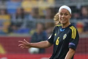 Sara Kristina Thunebro is a Swedish former footballer who was a defender for the Sweden women's national team. At club level Thunebro played for Eskilstuna United DFF, Tyresö FF and Djurgårdens IF of the Damallsvenskan, as well as FFC Frankfurt of the Frauen-Bundesliga.