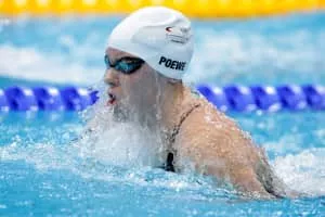 Sarah Poewe is an Olympic breaststroke swimmer who has competed internationally for both South Africa and Germany. Poewe was born in Cape Town, South Africa, the daughter of Lorrain and Reinhardt Poewe. She lives in Wuppertal, Germany. Her mother is from a Jewish family in South Africa, and her father is German.