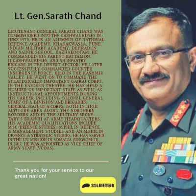 Lieutenant General Sarath Chand, PVSM, UYSM, AVSM, VSM is an Indian politician and former Vice Chief of Army Staff of the Indian Army. He served as Vice Chief of Army Staff from 13 January 2017 till his retirement on 31 May 2018. He joined Bharatiya Janata Party on 6 April 2019.