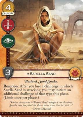 Sarella Sand is a bastard daughter of Prince Oberyn Martell and is a member of the Sand Snakes.