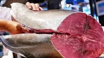 Sashimi is a Japanese delicacy consisting of fresh raw fish or meat sliced into thin pieces and often eaten with soy sauce.