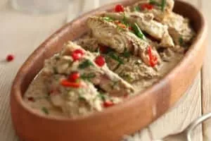 Satsivi is a Georgian dish made from poultry such as turkey and chicken put into walnut sauce. The term satsivi is also used as a generic name for a variety of poultry made with the walnut sauce.