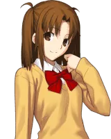 Satsuki Yumizuka, also known as "Sacchin" is a character from Tsukihime. She is a girl with an unrequited crush on Shiki. Her character image song, as stated in Geccha, is T'EN VA PAS, performed by Harada Tomoyo.