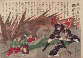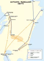 The Satsuma Rebellion or Seinan War was a revolt of disaffected samurai against the new imperial government, nine years into the Meiji Era. Its name comes from the Satsuma Domain, which had been influential in the Restoration and became home to unemployed samurai after military reforms rendered their status obsolete.