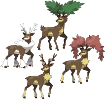 Sawsbuck is a Normal/Grass-type Pokémon introduced in Generation V. It changes appearance in accordance to the seasons currently present in the games.