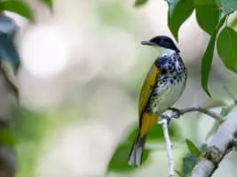 The scaly-breasted bulbul is a species of songbird in the bulbul family. It is found from the Malay Peninsula to Borneo. Its natural habitat is subtropical or tropical moist lowland forests. It is threatened by habitat loss.