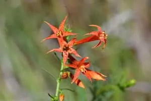 Ipomopsis aggregata is a species of flowering plant in the phlox family, commonly known as scarlet trumpet, scarlet gilia, or skyrocket because of its scarlet red flowers with lobes curving back as if blown back by rocketing through the air.