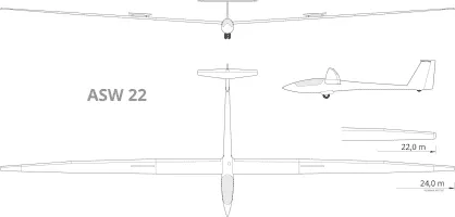 The ASW 22 is an Open Class glider built of modern fibre reinforced composites including carbon-fibre and Kevlar. The manufacturer of the ASW 22 is Alexander Schleicher GmbH & Co. The 'W' indicates that this is a product of the German designer Gerhard Waibel. The ASW 22 Open Class is a successor to the ASW 17.