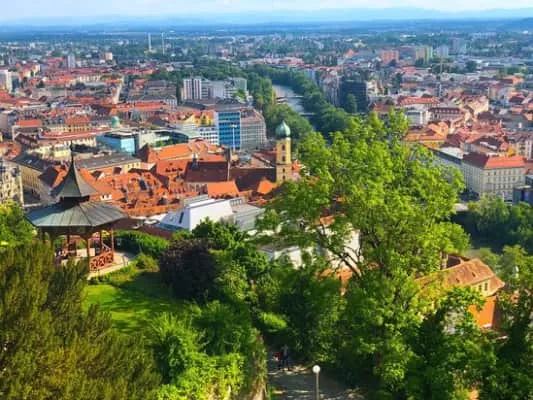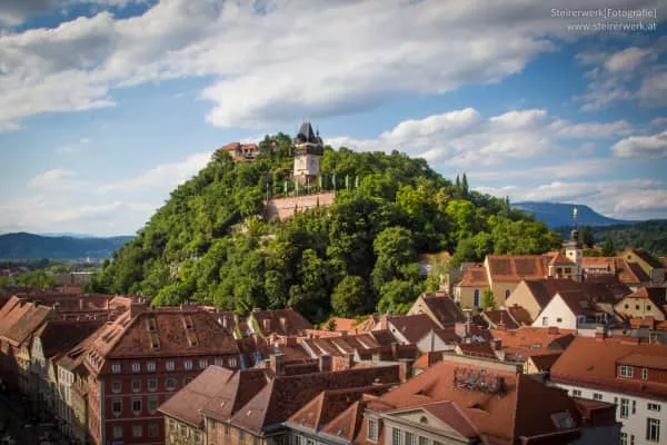 The Schlossberg is a tree-clad hill and the site of a fortress in the centre of the city of Graz, Austria. The hill, at 473 metres above sea level, is now a public park and affords extensive views of the city.