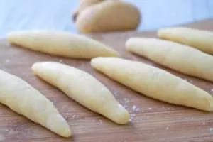 Schupfnudel, also called Fingernudel, is a type of dumpling or thick noodle in southern German and Austrian cuisine. It is similar to the Central European kopytka. They take various forms and can be referred to with a variety of names in different regions. They are usually made from rye or wheat flour and egg.