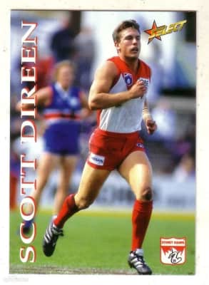 Scott Direen is a former Australian rules footballer who played with the Sydney Swans in the Australian Football League. Drafted from Tasmanian club New Norfolk, Direen was a defender during his time in Sydney. He played 19 of a possible 22 games in 1995, the most appearances he made in a season.