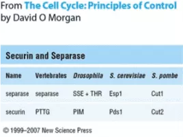 Securin is a protein involved in control of the metaphase-anaphase transition and anaphase onset. Following bi-orientation of chromosome pairs and inactivation of the spindle checkpoint system, the . . .