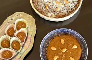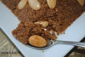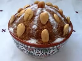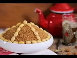 Sellou, also called slilou or sfouf, is a dessert consumed in Morocco. It is made from a base of roasted flour mixed with butter, honey, almonds, sesame, and possibly other nuts and spices.