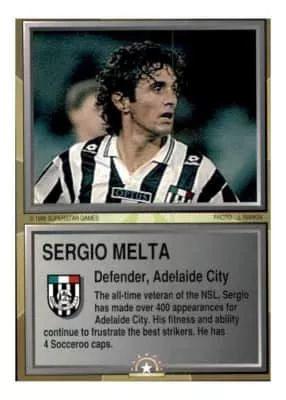 Sergio Melta, is a former Australian footballer, who had an extensive career in Australia's National Soccer League, spent entirely with Adelaide City.