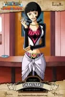 Shakuyaku, most commonly known by her nickname Shakky, is the bartender of Shakky's Rip-off Bar on the Sabaody Archipelago. She is a former pirate, the wife of Silvers Rayleigh, and is also known for once being chased by the legendary Marine, Monkey D. Garp.
