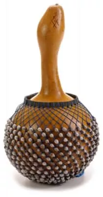 The shekere is a West African percussion instrument consisting of a dried gourd with beads or cowries woven into a net covering the gourd.The Shekere was originated in a tribe in Nigeria called the Yoruba tribe.