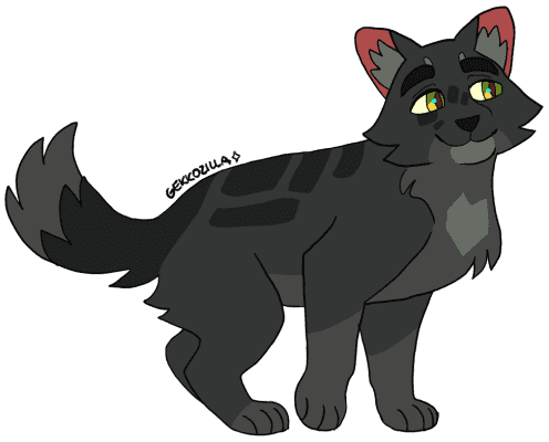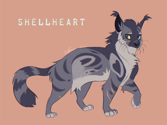 Shellheart is a dappled gray tom with graying whiskers.