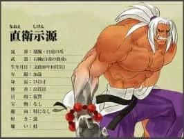 Shigen Naoe is a character from The Last Blade series and is voiced by Enma Itō. His symbolic item is the Byakko rosary that he wears. His official slogan for is "Iron Tiger":鉄腕猛虎.
