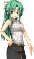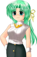 Shion Sonozaki is one of the main protagonists and anti-hero of the Higurashi: When They Cry series. She is the twin sister of the heir of the Sonozaki family, Mion Sonozaki. She is obsessed with Satoshi Hojo, which has been the subject for at least four different songs.