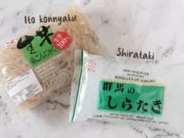 Shirataki are thin, translucent, gelatinous traditional Japanese noodles made from the konjac yam. The word "shirataki" means white waterfall, referring to the appearance of these noodles.