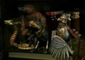 An American student in Edinburgh receives a box of carved animals which come to life.
