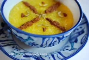 Sholezard is an Iranian traditional saffron rice pudding dessert. It is traditionally served on the occasion of festivals such as Tirgan, as well as Ramazan.