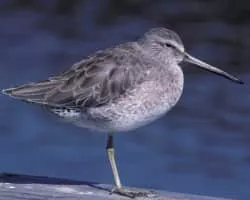The short-billed dowitcher, like its congener the long-billed dowitcher, is a medium-sized, stocky, long-billed shorebird in the family Scolopacidae. The genus name Limnodromus is Ancient Greek from limne, "marsh" and dromos, "racer". The specific griseus is Medieval Latin for "grey".