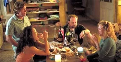Struggling writer and wine enthusiast Miles (Paul Giamatti) takes his engaged friend, Jack (Thomas Haden Church), on a trip to wine country for a last single-guy bonding experience. While Miles wants to relax and enjoy the wine, Jack is in search of a fling before his wedding. Soon Jack is sleeping with Stephanie (Sandra Oh), while her friend Maya (Virginia Madsen) connects with Miles. When Miles lets slip that Jack is getting married, both women are furious, sending the trip into disarray.