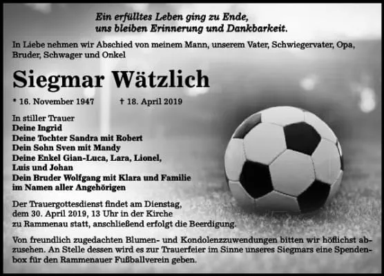 Siegmar Wätzlich was a German footballer.