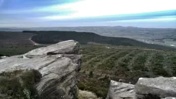 The Simonside Hills are a hill range in Northumberland, England near the town of Rothbury. Most of the hills are around 300 metres to 400 metres high and are popular spots for hikers in the area. The highest point is Tosson Hill at 440 metres.