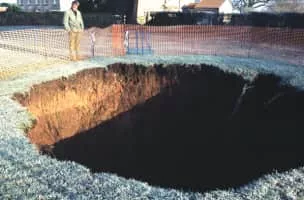... A Sinkhole - a depression or hole in the ground caused by the collapse of the surface layer - can occur when water flowing underground erodes rocks beneath the surface...