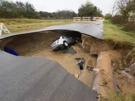 ...A car in a Sinkhole in Essex and six apartments had to be evacuated due to the changing ground ...