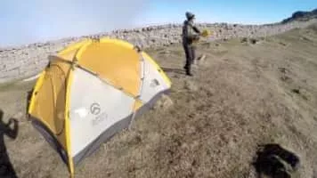 Slieve Bearnagh is one of the Mourne Mountains in County Down, Northern Ireland. It has a height of 739 metres. Its summit is crowned by two groups of jagged tors with a gap between them, giving it a distinctive shape. The Mourne Wall crosses the summit of Slieve Bearnagh east to west.