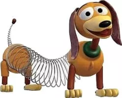 Slinky Dog (better known as Slinky) is a supporting character in the Toy Story franchise. He is a toy dachshund who speaks with a graveled Southern accent. Slinky possesses a plastic front and hindquarters, with a very stretchable metal slinky as his middle (hence his name), vinyl ears and a green collar.