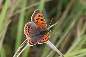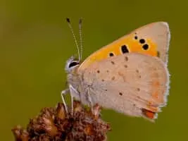 Lycaena phlaeas, the small copper, American copper, or common copper, is a butterfly of the Lycaenids or gossamer-winged butterfly family. According to Guppy and Shepard, its specific name phlaeas is said to be derived either from the Greek phlego, "to burn up" or from the Latin floreo, "to flourish".