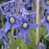Clematis integrifolia is a flowering vine of the genus Clematis. Like many members of that genus, it is prized by gardeners for its showy flowers. C. integrifolia bears nodding, urn-shaped blue flowers in summer that are 1. 5 inches wide. It is a fairly short variety, growing only to 3 feet high.