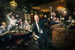 | Med stiv kuling & håret tilbage | |