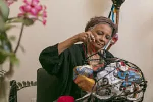 Sonia Gomes is a contemporary Afro-Caribbean artist who lives and works in São Paulo, Brazil. She is known for her mixed media sculptures made of fabric, wires, and other objects that are either found or given to her.