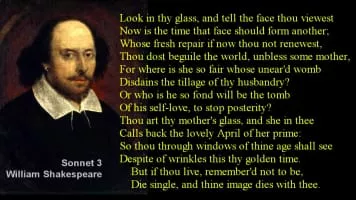 Sonnet 3 is one of 154 sonnets written by the English playwright and poet William Shakespeare. It is often referred to as a procreation sonnet that falls within the Fair Youth sequence.
